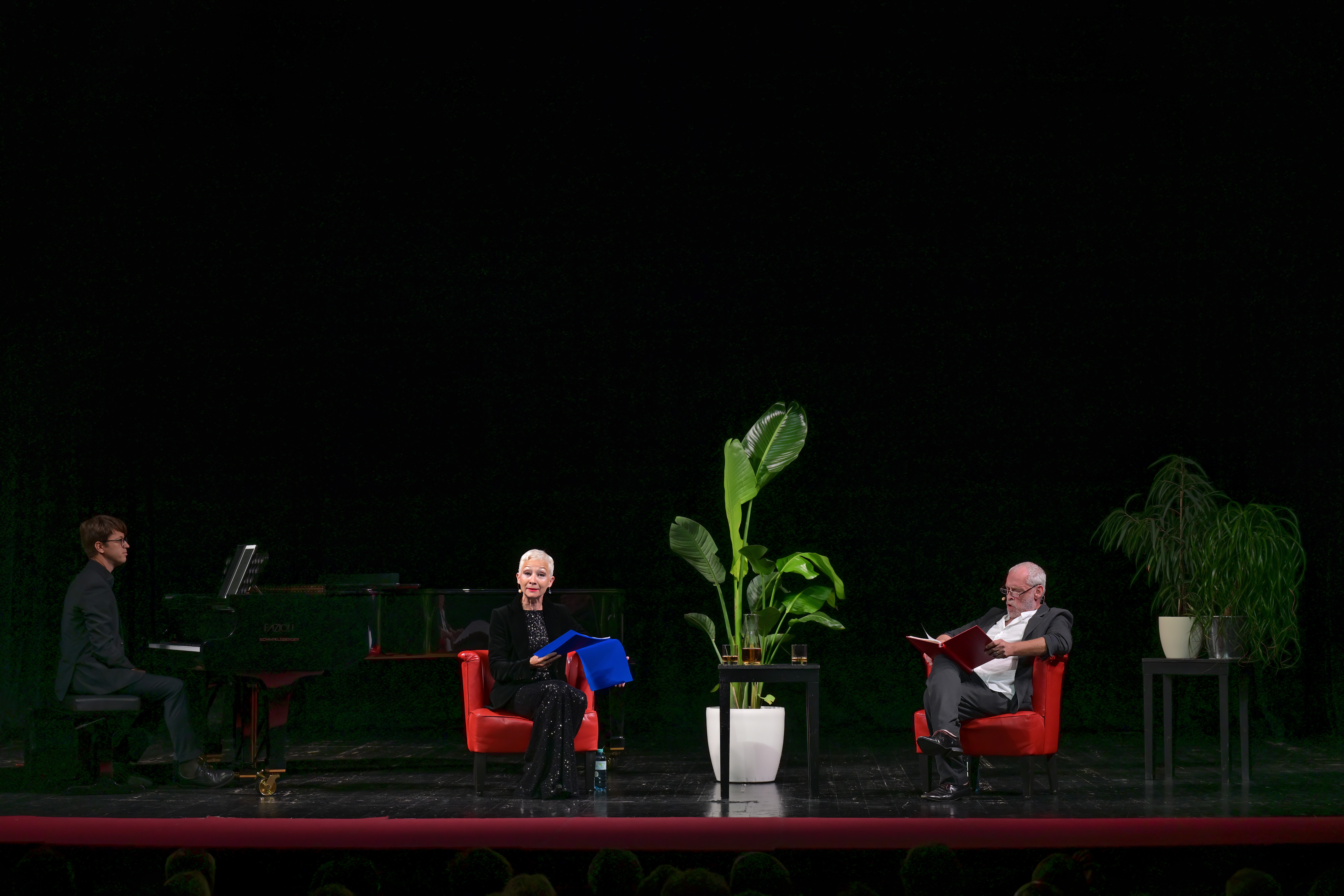 Philipp Jagschitz begleitet die Künstler am Flügel. Mit Hemingways Liebeshöllen öffnen Johannes Krisch, Sona MacDonald und Philipp Jagschitz Blicke in eine Welt, in der Krieg und Liebe, Leidenschaft und Hass, aber auch tiefe Verzweiflung nahe beieinander liegen. Ein explosives Event mit drei Ausnahmekünstlern. Und freuen Sie sich auf die Lieder der Dietrich, die Sona MacDonald auf sublime Weise in den Abend einflicht.